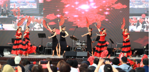 축제 주제를 강조하기 위해 뮤지컬을 활용하여 우리 모두 하나 되는 에너제틱한 무대 구성