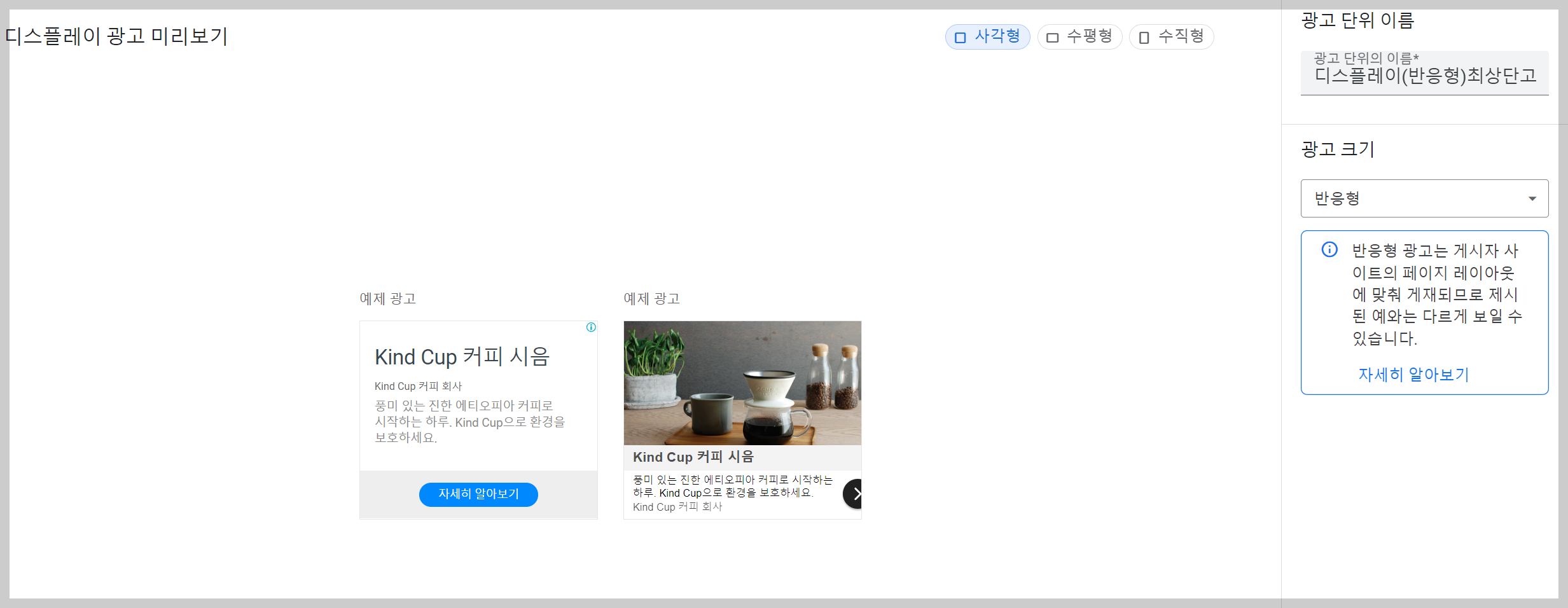 참고로 수동광고 설정은 이 디스플레이 광고만 이용하셔도 충분합니다.