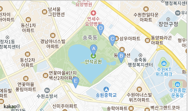 만석공원 제4공영주차장, 만석 제3공영주차장, 만석공원 제2공영주차장이 만석공원 제2야외음악당