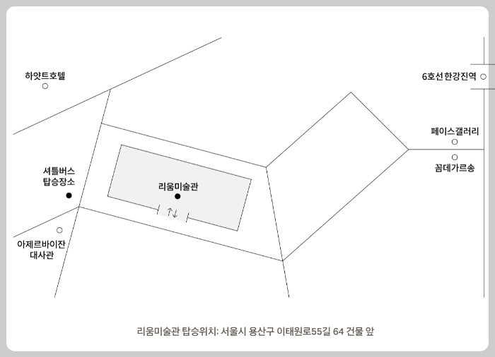 📍리움미술관 탑승위치: 서울시 용산구 이태원로 55길 64 건물 앞