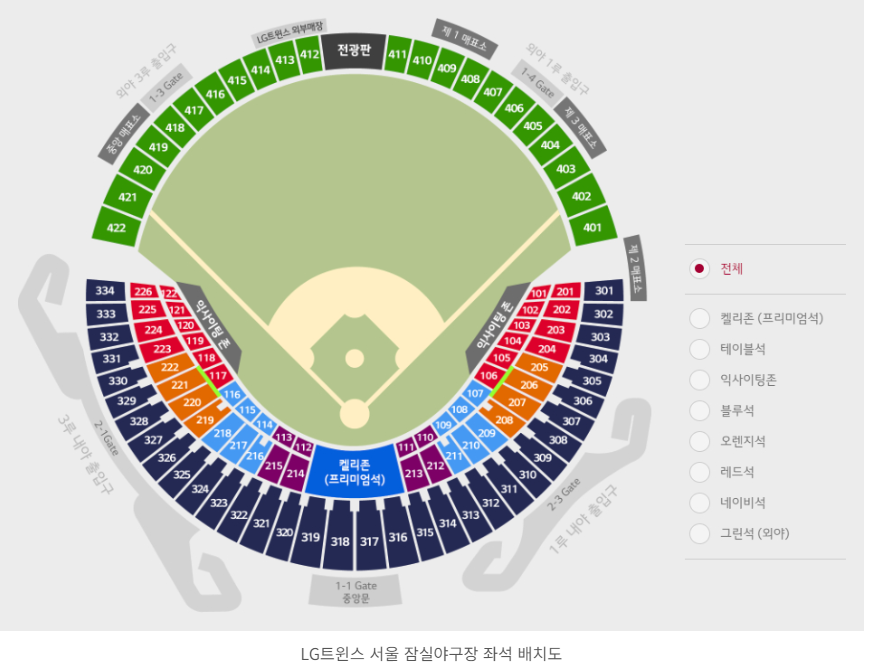 LG트윈스 서울 잠실야구장 입장권 요금, 티켓 가격