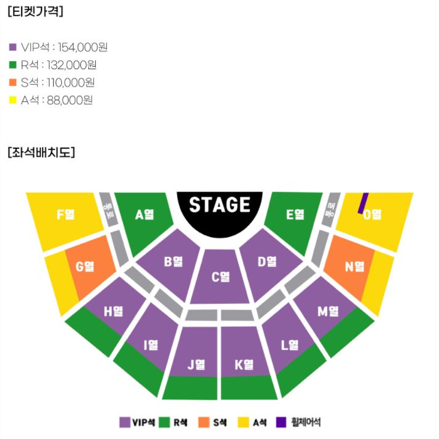 공연은 전석 지정좌석으로 진행되며 휠체어석은 기획사 전화예매를 통해서만 가능합니다.