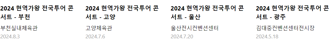 현역가왕 전국투어콘서트는 앞으로 부산, 전주, 인천 , 포항