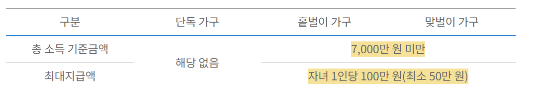✔️ 자녀장려금 지급액