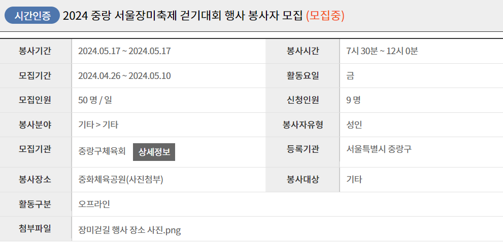 ✔️ 2024 중랑 서울장미축제 걷기 대회 행사 봉사자 모집 (시간인증봉사)